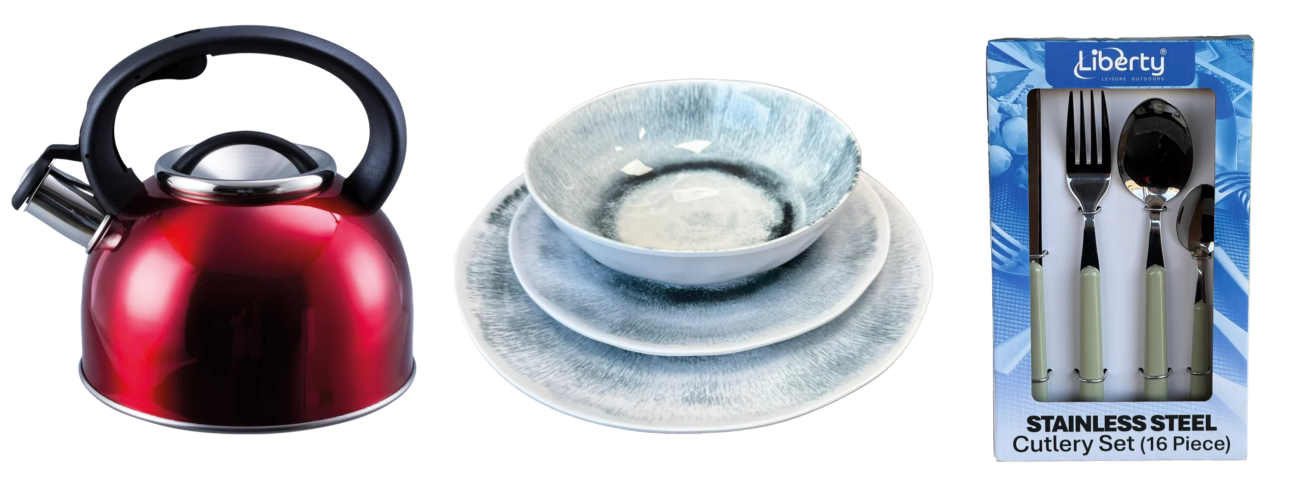 Liberty’s kitchen and tableware range includes essential items such as stainless steel whistling kettles, durable cutlery sets, and non-slip mugs designed specifically for outdoor use. These products combine practicality with quality, helping campers and caravanners enjoy meal and drink times with confidence and convenience. Compact, lightweight, and robust, this collection supports easy packing and hassle-free cleaning.