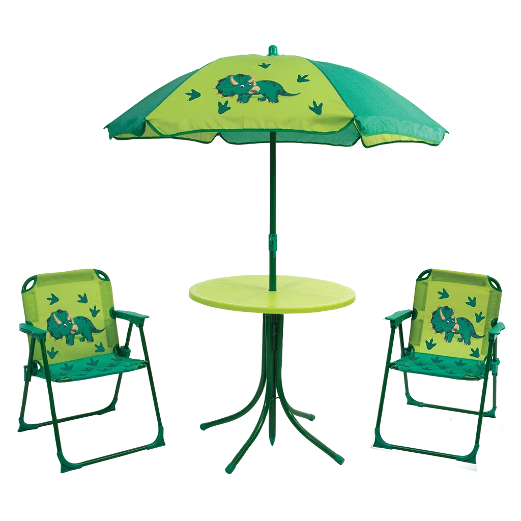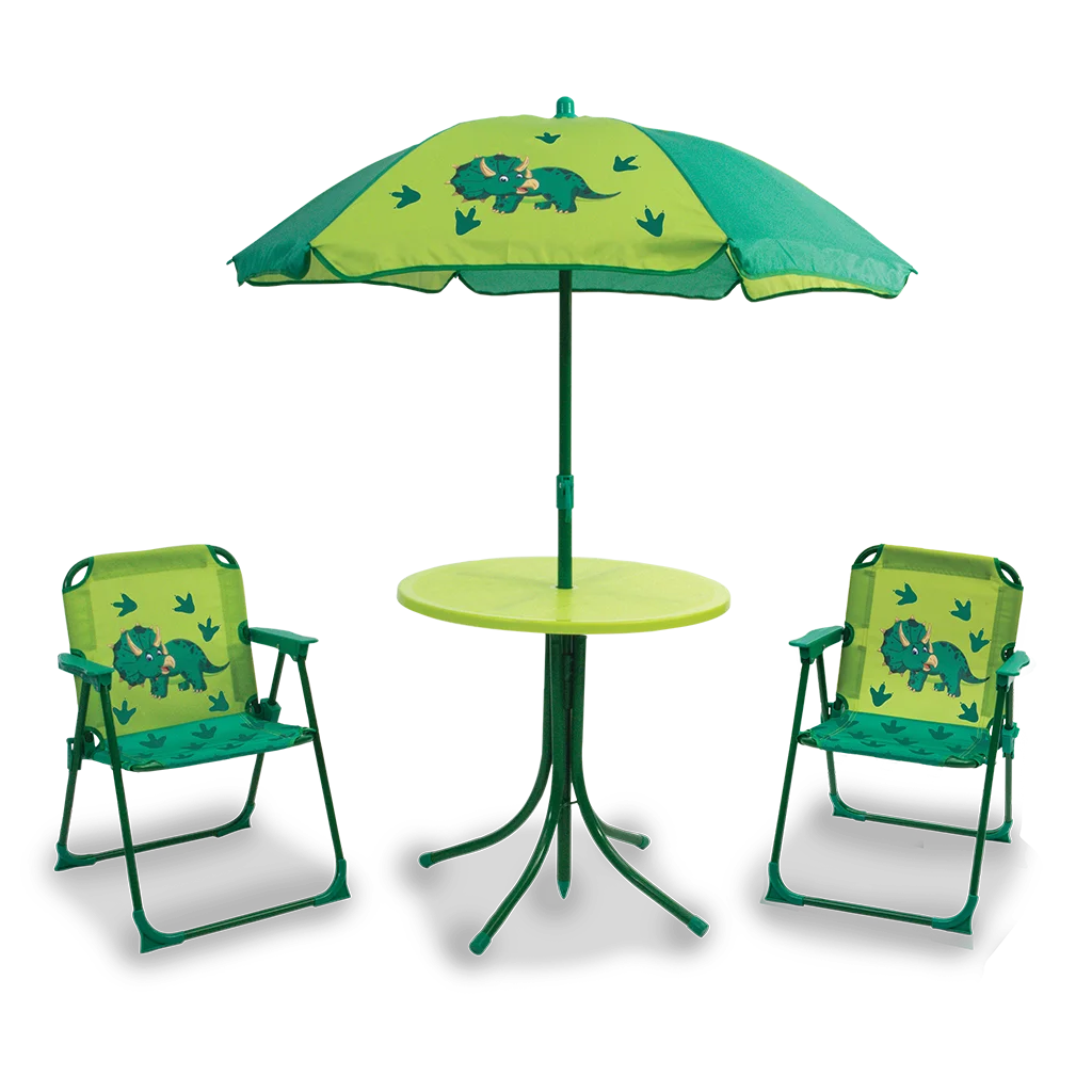 Bring a touch of enchantment to your outdoor space with this adorable dinosaur garden set. Designed with both fun and functionality in mind, it includes two folding chairs, a sturdy table, and a matching adjustable umbrella to keep them shaded on sunny days. Lightweight yet durable, its easy to move, store, and set upmaking it ideal for everyday use or outdoor adventures.