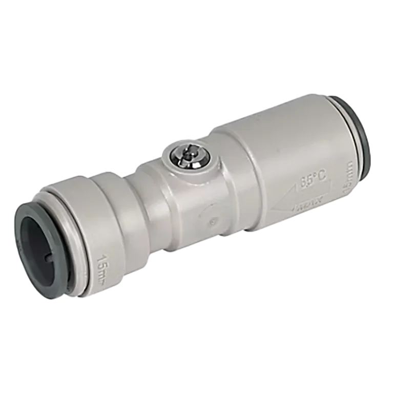 John guest speedfit 15mm push-fit service valve for the connection of plastic and copper pipe.