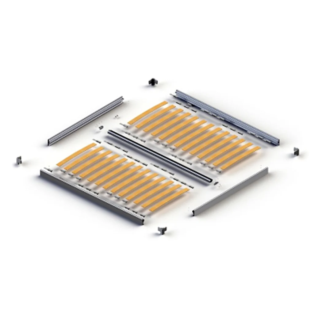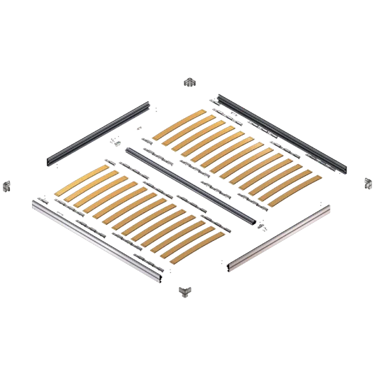 - Four aluminium profiles are offered for cutting to size, a kit of standard wooden slats and slat holders.