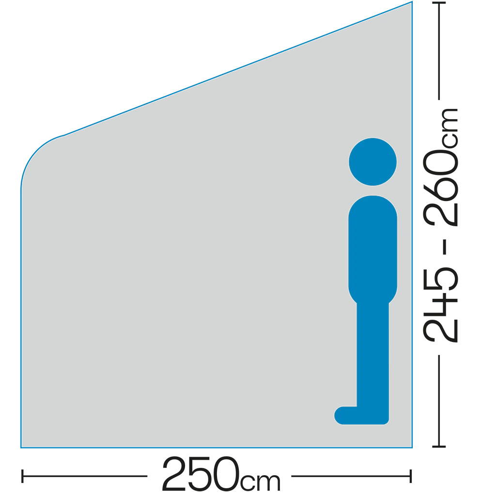 Start your holidays with the Mars air awning, with an awning depth of 250cm and experience a high accuracy of fit and a perfect width.