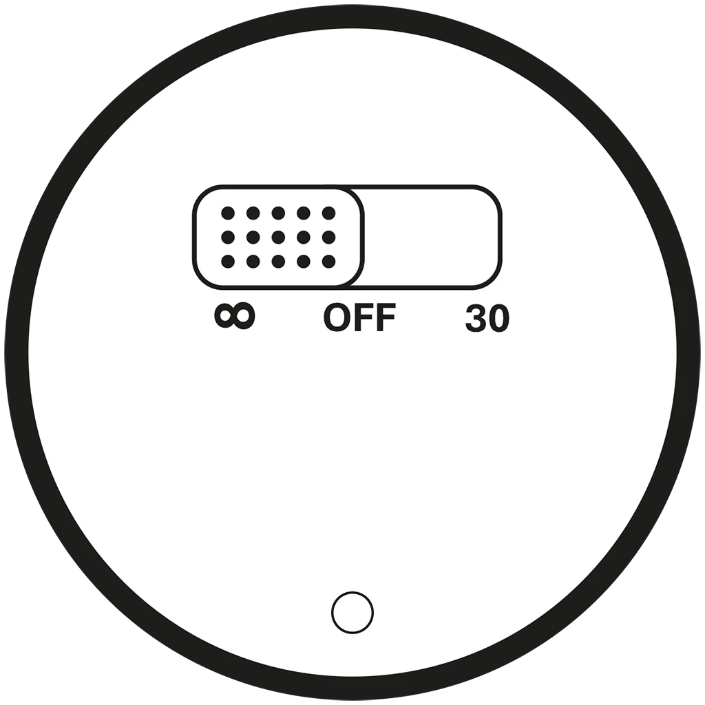 If you turn the light to the 30 position (as shown below) then the light will be in sleeping mode, where it will automatically turn the light off after 30 minutes. Please remember the light itself is still on, just the light is set to 0%, so it will still drain a little of the battery, so for long periods you should turn the light off on the power switch to conserve your battery life.