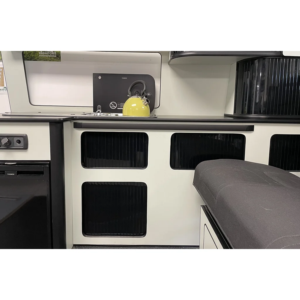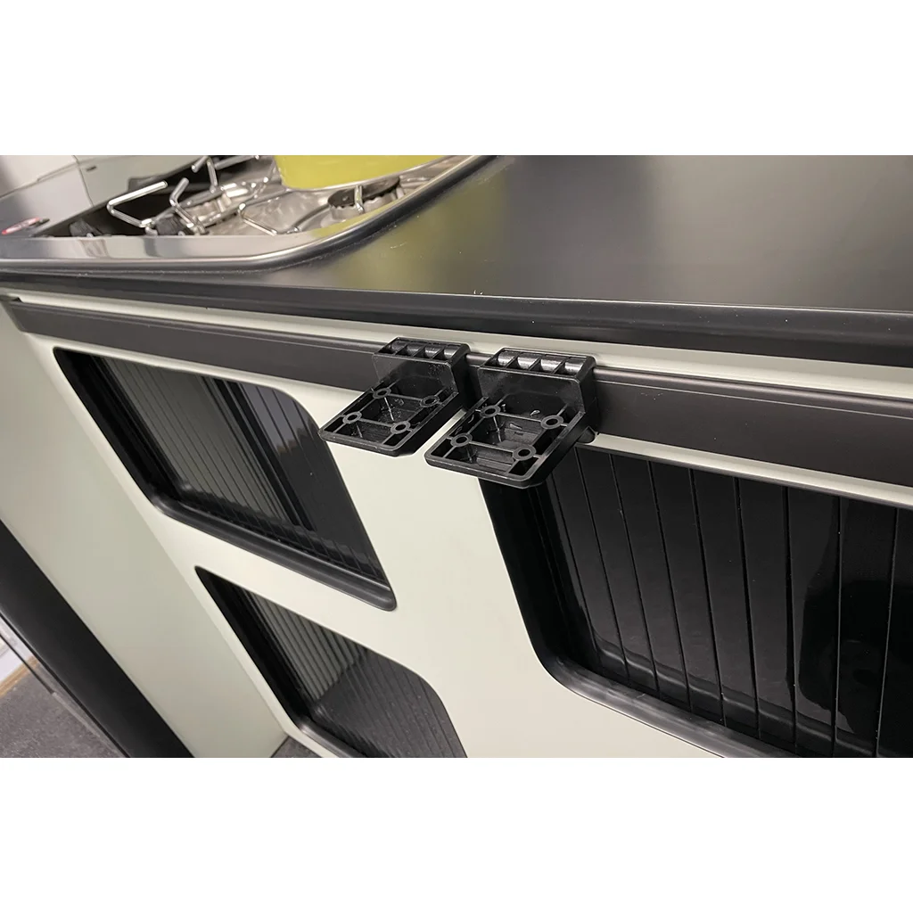 Anodised Aluminium table rail offering a non slip design for secure table attachment. The rail set comes with the table clips required to fit the table top to the rails. Ideal for campervans, motorhomes and caravans.