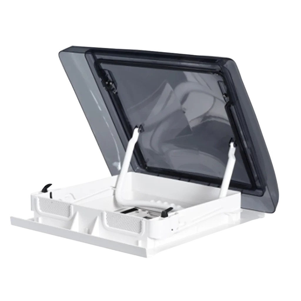 The SkyMaxx LX is a high-quality, versatile rooflight designed for 500 x 700mm openings, ideal for caravans, motorhomes, and commercial vehicles. The LX model accommodates roof thicknesses from 42mm to 60mm without the need for cutting or adapters, providing a straightforward and professional installation solution. Its robust design and compliance with CE and R43 standards, along with RoHS certification, make it a reliable choice for manufacturers, resellers, and service providers.