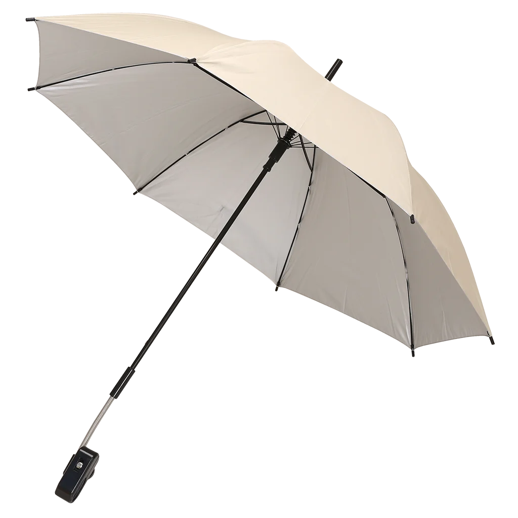It has a unique double universal clamp which means the sunshade can be fitted horizontally or vertically allowing for fitment to any Quest Elite chair and almost any other chair on the market. The fitting arm is also posable using the premium quality poseable arm which gives even more flexability to the positioning. The universal clamp also means that the sunshade can be fitted to virtually every pram or pushchair and the large canopy gives you great cover for those little ones.
