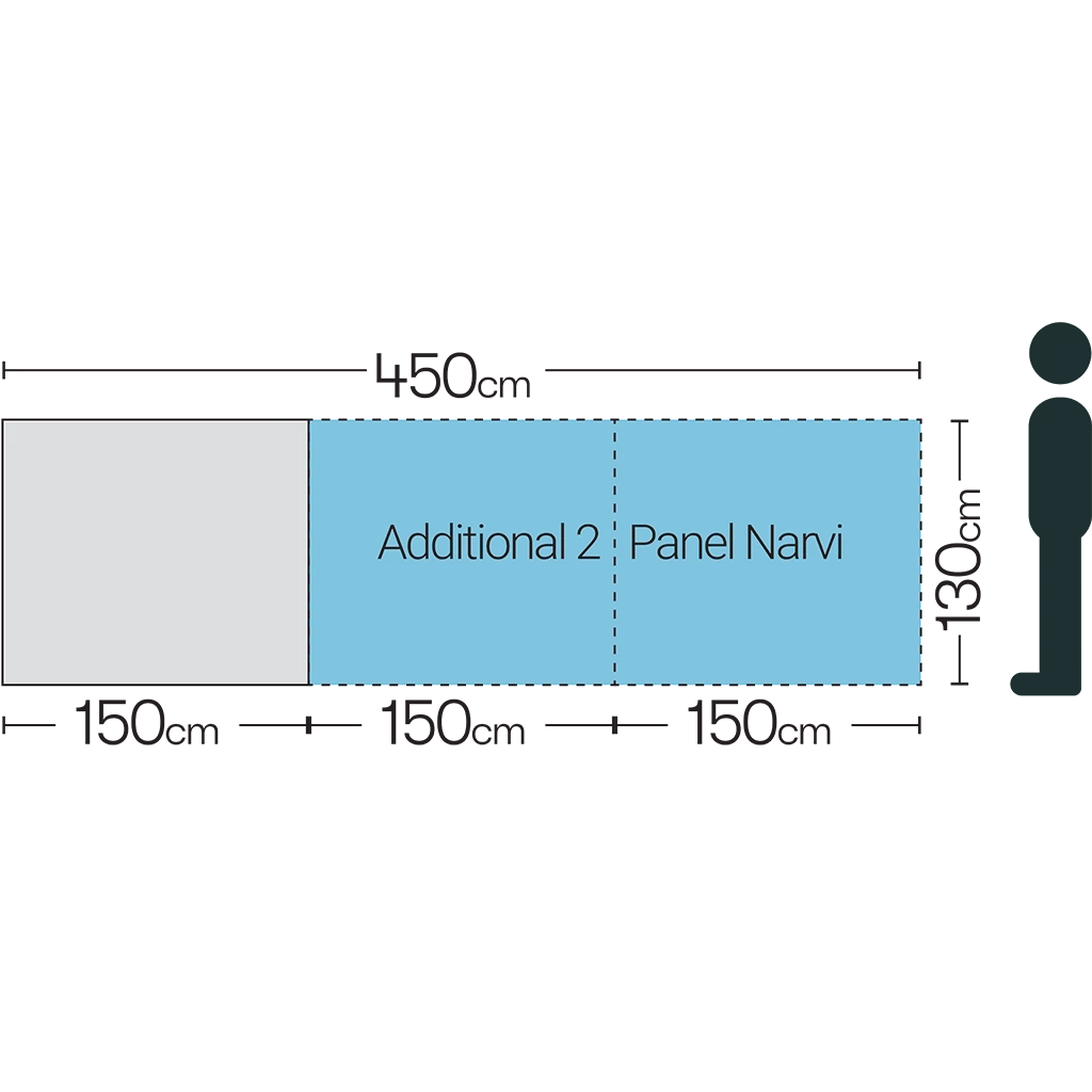 The Narvi is extendable as you can zip as many Narvi’s together allowing you to extend it to any length.They simply zip together in seconds and allow you to form corners at each zipped section.