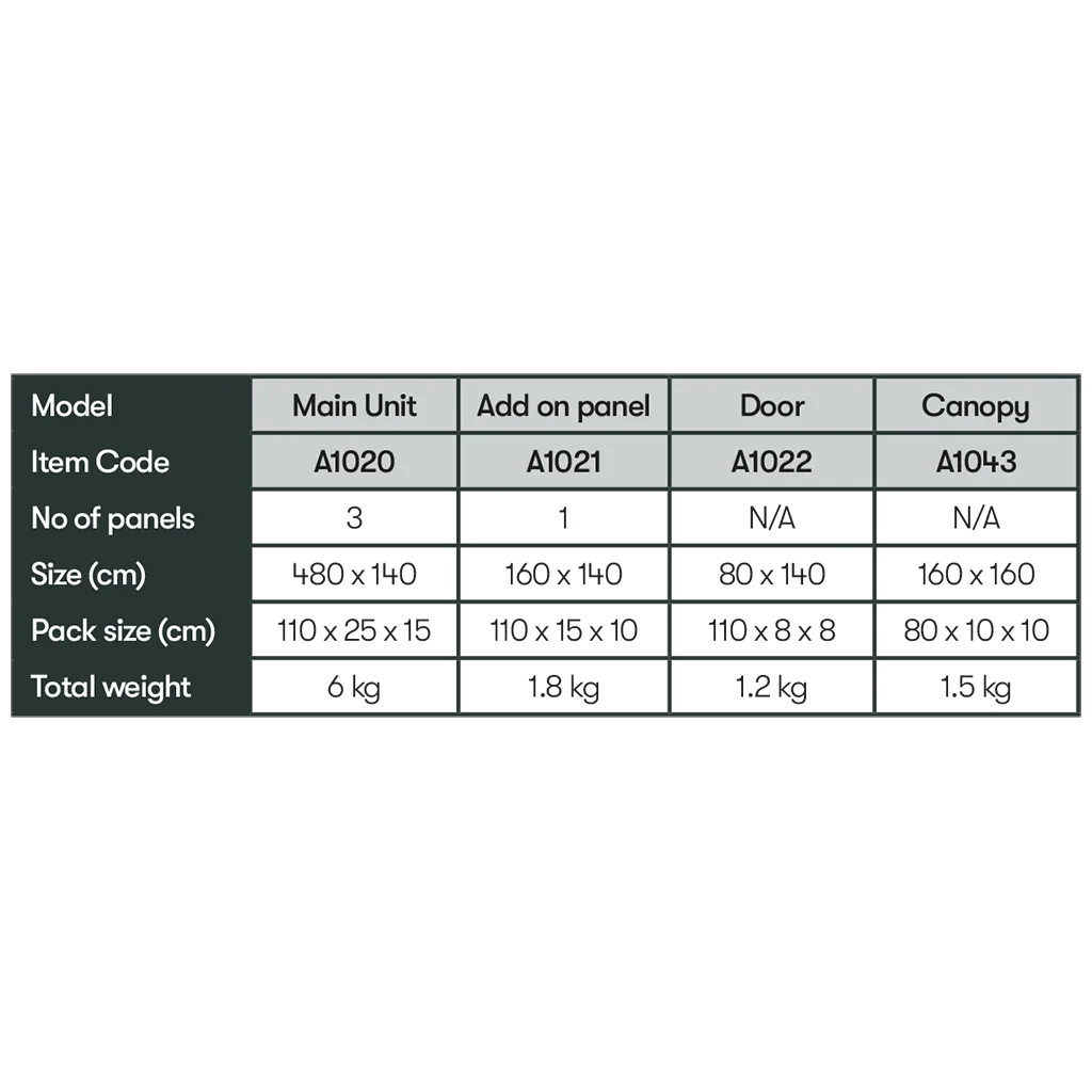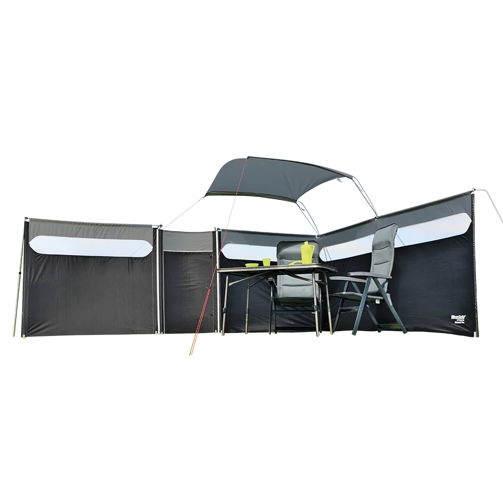 Designed to go right down to the ground, the Windshield Pro creates a safe and enclosed area, making it perfect for pets and children. Its freestanding structure ensures that all the available space can be used without obstruction. The extendable design means you can add a door, extra panels, or a weather shade, giving you even more options to customize your setup. Built-in windows provide visibility while maintaining wind protection, and the lightweight aluminium frame ensures durability without adding unnecessary weight.