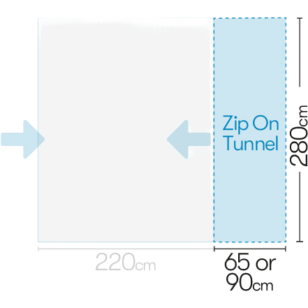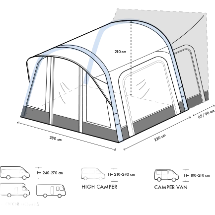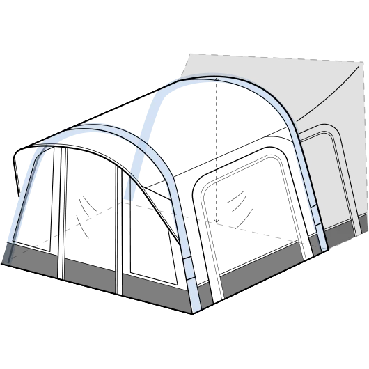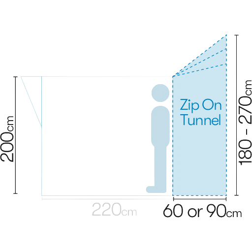 This is the premium quality, zip in low vehicle connector for the Zodiac drive away awning. It allows you to connect your Zodiac drive away awning to vehicles between 180 and 210 cm high.